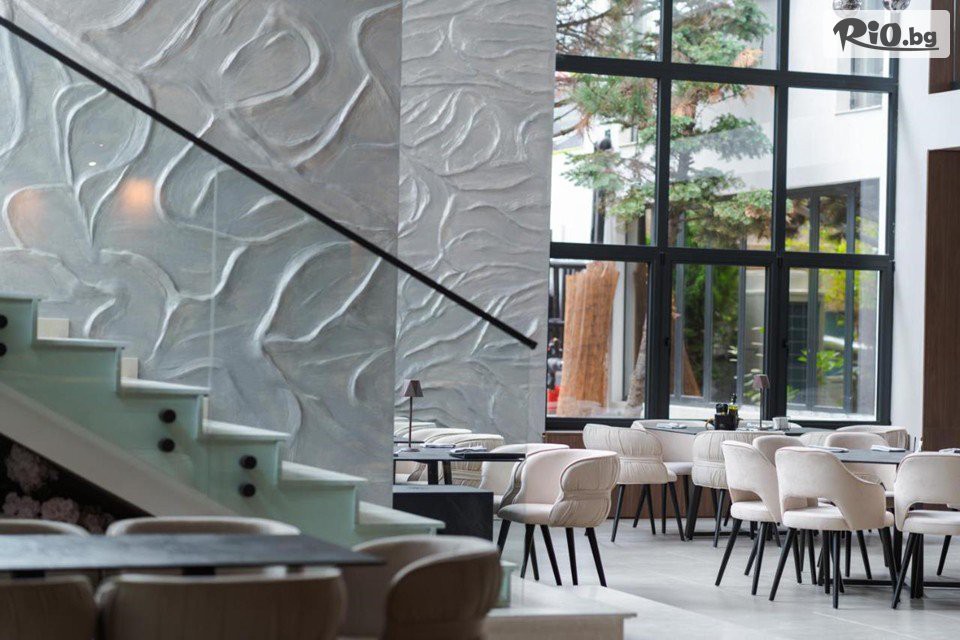 • СПА пакет: открит и закрит басейн с минерална вода, външни джакузита, билкова сауна, финландска сауна, хамам, парна баня, приключенски душ, йодна стая, зона за релакс, фитнес;
