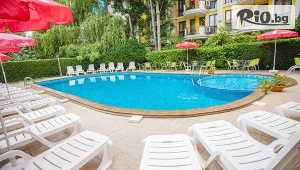 • Открит басейн, детски басейн, чадъри и шезлонги около басейна;