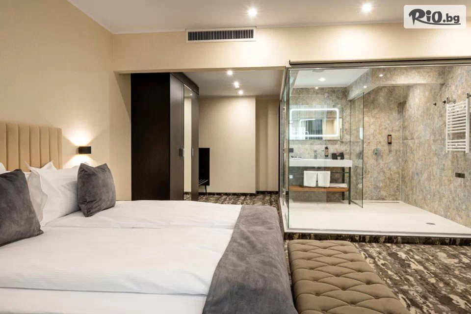 • Един ваучер е за един човек, настанен в двойна стая, при двама пълноплащащи. Обединени делукс стаи и двуспален апартамент, офертата важи за цяло помещение.