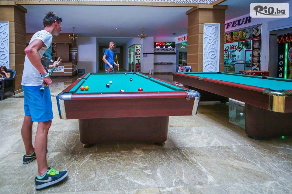 • Безплатни услуги: сауна, турска баня, фитнес, анимация за деца и възрастни, жива музика (в определени дни), спортни активности като аеробика, водна гимнастика, тенис на маса, дартс, плажен волейбол, баскетбол и Wi–Fi в лобито;
