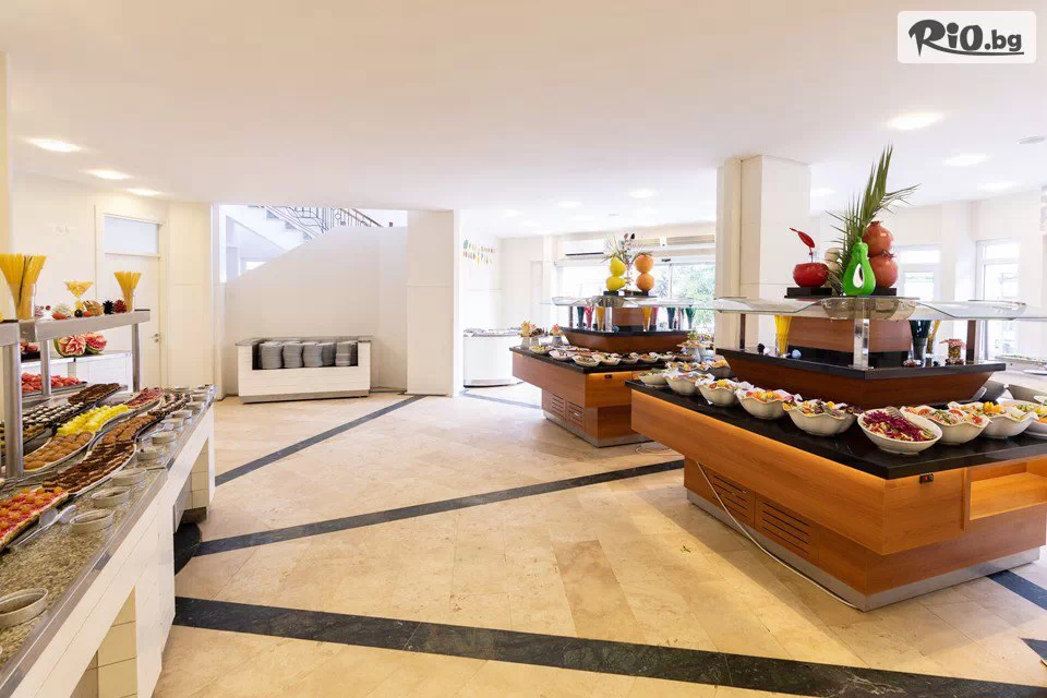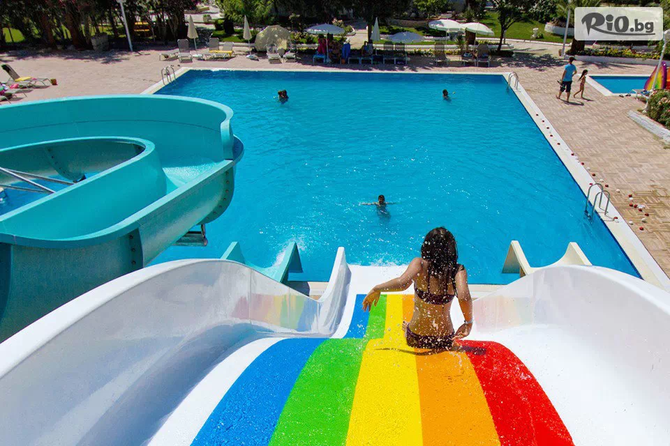• Ползване на открит басейн, детски басейн, закрит басейн, детска площадка, мини клуб (10:00 - 17:00 ч.) за деца от 4 до 12 г., турска баня, сауна, аеробика, фитнес център, плажен волейбол, тенис на маса, дартс, кану, водни колела (15 мин.), анимационна програма, интернет (в лоби), паркинг;