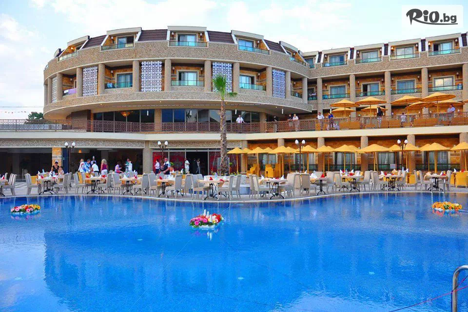Плати Сега: 53.70 € / 105.03 лв КЪСНО МОРЕ 2026 - Самолетна почивка на 100 м. от плажа в Elamir Resort Hotel 4*, Кемер! 7 All Inclusive нощувки + открит басейн, чадъри и шезлонги на плажа, с полет от София