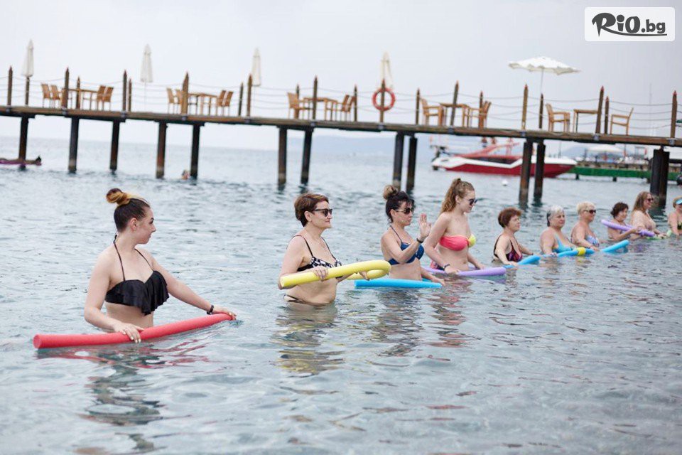 • Безплатни услуги: турска баня, сауна, фитнес, аеробика, аква аеробика, плажен волейбол, тенис на маса, дартс, боча, анимационна програма, дискотека (вход), безжичен интернет (около басейна);