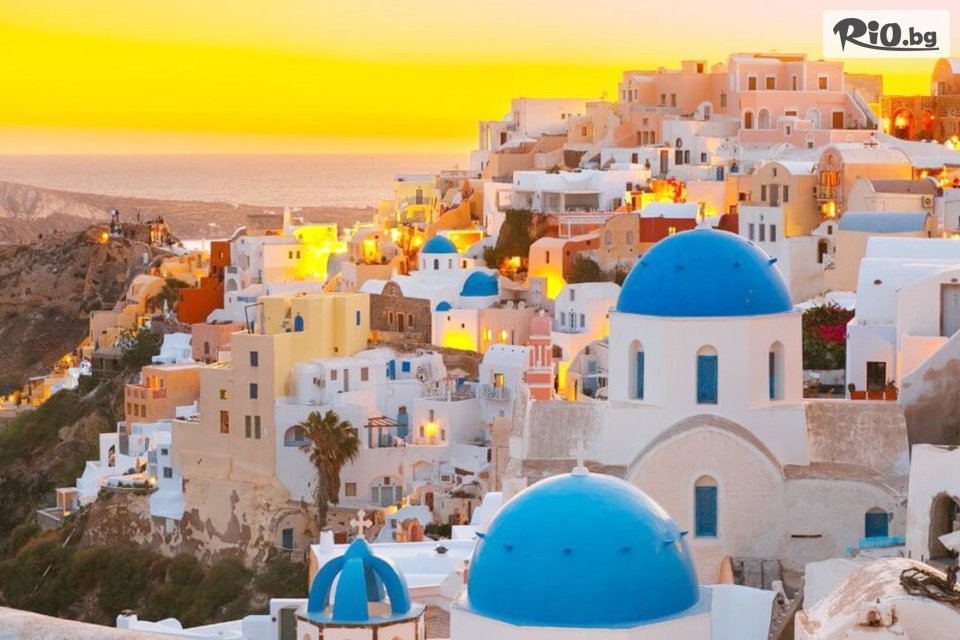 • Санторини /SAN-01/ - екскурзия до селището Ия. Цена - възрастен 86 €/168,2 лв., на дете 65 €/127,13 лв./. Безспорно, едно от най-красивите места на света, впечатляващи гледки от ръба на калдерата към морето и към градчетата Ия, Тира, Фиростефани, Имеровигли.. Ще отидем първо до селището Мегалохори, едно от най-автентичните кътчета на Санторини, запазило характера и бита на местните хора. Пътуването ни преминава през селищата Фиростефани и Имеровигли и пристигаме в Ия. По време на цялото пътуване се възхищяваме на неописуемата гледка към вулкана и малките островчета в него Тирасия, Палеа Камени и Неа Камени. Имаме достатъчно време в Ия за разходка из павираните улички, шопинг и снимки.
