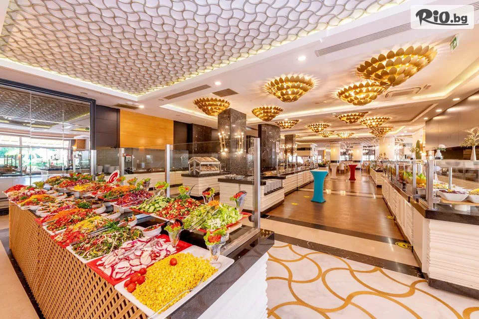 • Хотелът работи по концепция Ultra All Inclusive. Основният ресторант на хотела, работещ на шведска маса, ще Ви удиви с изобилието си от разнообразни ястия от световната и турската кухня.