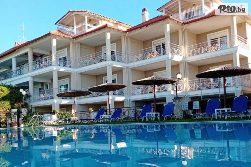 Лято 2026г. в Golden Residence Family Resort 3* на 50 метра от плажа в Пефкохори, Халкидики! Нощувка със закуска и вечеря + ползване на басейн до 30 Септември